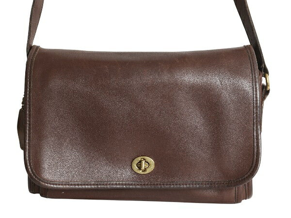 USA製 オールドコーチ 本革 レザー ショルダー バッグ 濃茶 レザーバッグ オールレザー コーチ カバン 斜めがけ 肩掛け シンプル ブラウン