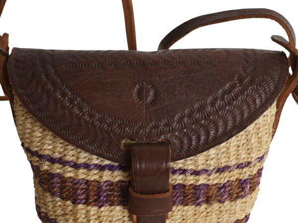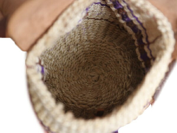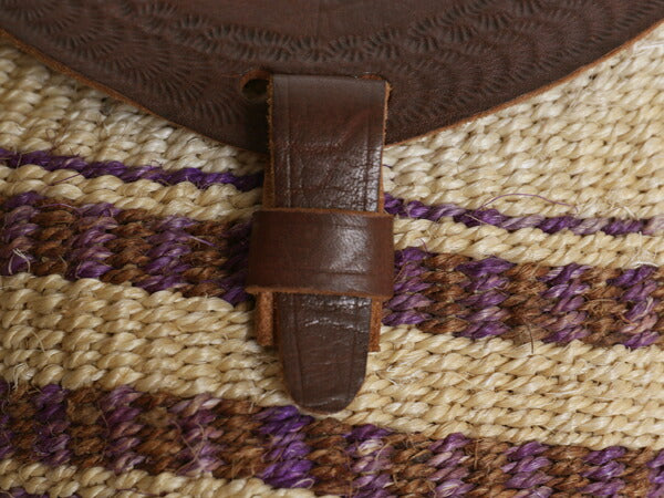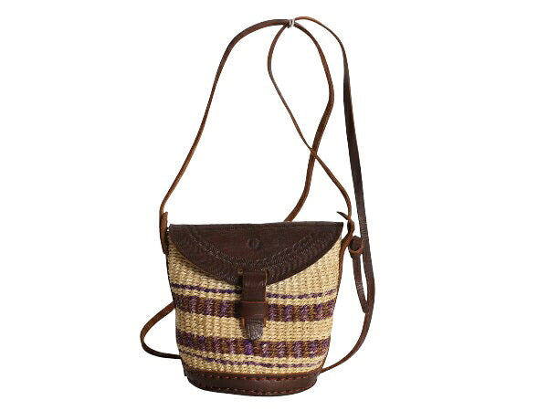 手編み サイザル カゴ ショルダー バッグ レディース 古着 本革レザー 切替 総柄 肩掛け 斜め掛け ミニバッグ かごバッグ 麻 ハンドメイド
