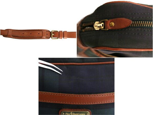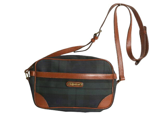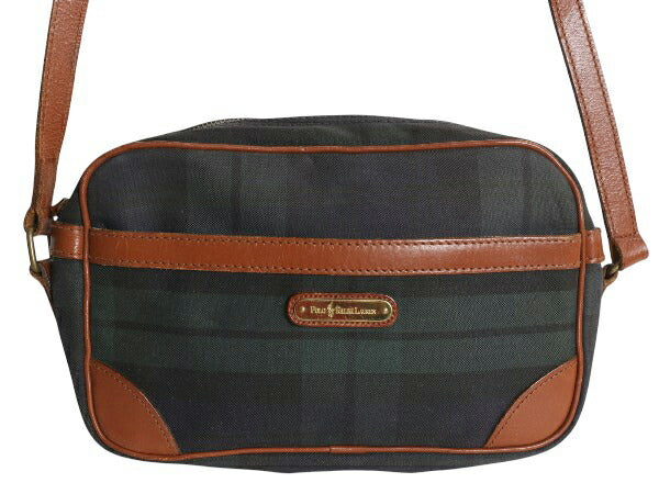 90s ポロ ラルフローレン ブラックウォッチ チェック ショルダー バッグ / メンズ レディース オールド 本革レザー 肩掛け 斜め掛け 当時物