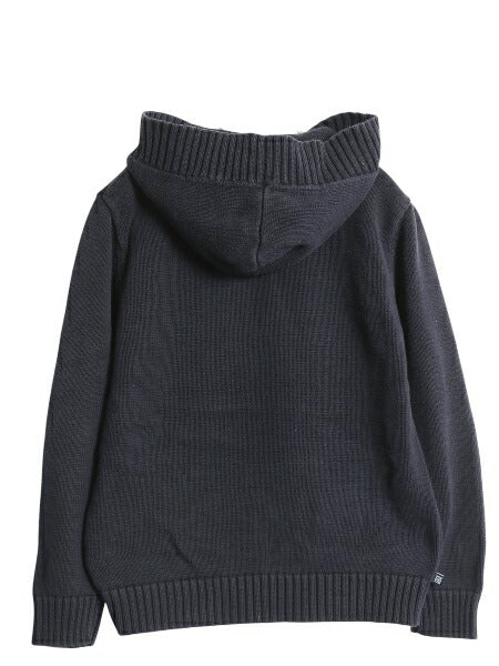 フード、ポケットのリブ編みの切替が良いアクセントになった