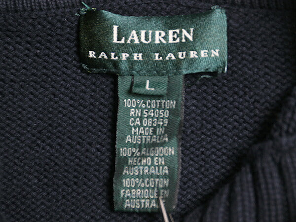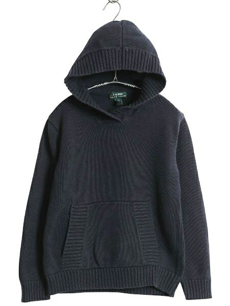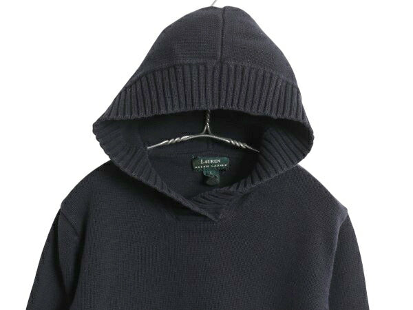 90s ローレン ラルフローレン ニット パーカー レディース L オールド コットン セーター プルオーバー フード ヘビーウェイト シンプル 紺