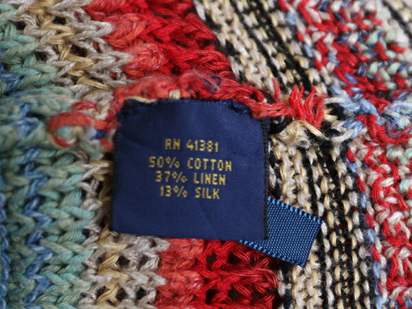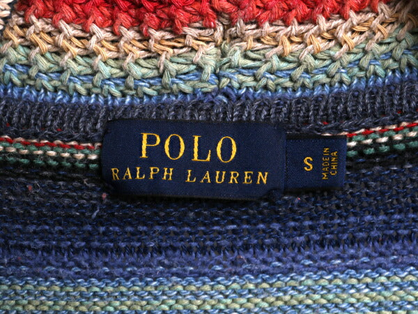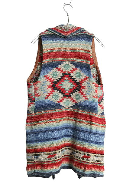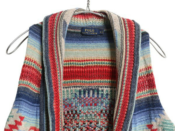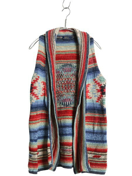 ポロ ラルフローレン ショールカラー ロング ニット ベスト レディース S / 総柄 コットン リネン シルク ネイティブ 前開き 羽織り重ね着