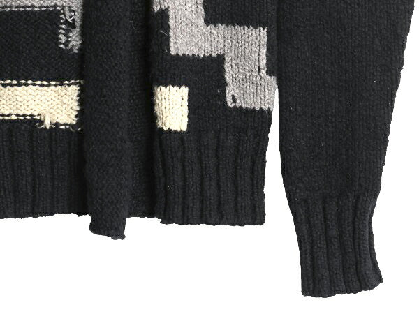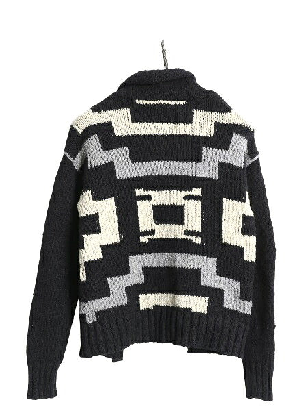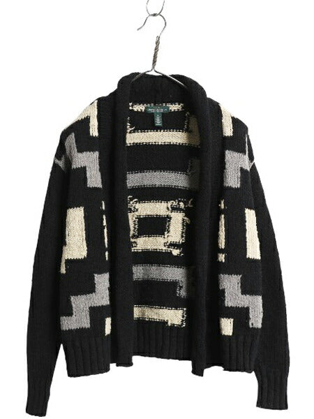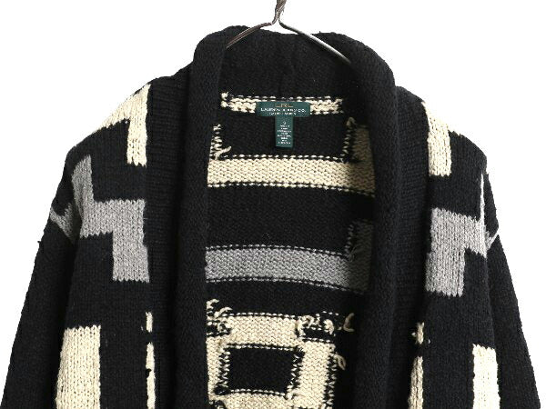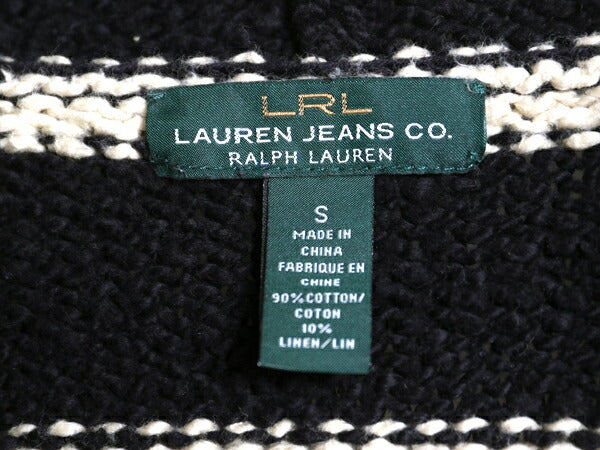 00s ローレンジーンズ ラルフローレン ショールカラー ニット カーディガン レディース S オールド コットン リネン 羽織り ネイティブ 黒