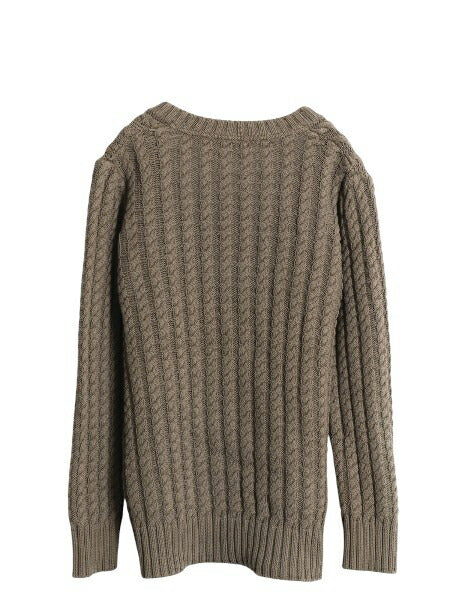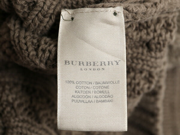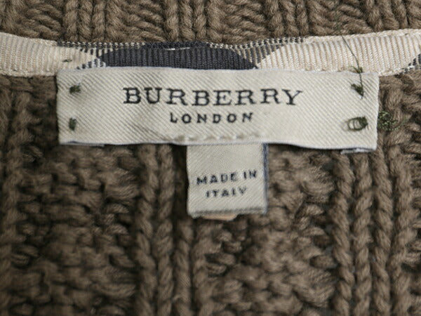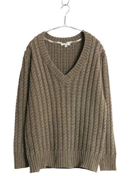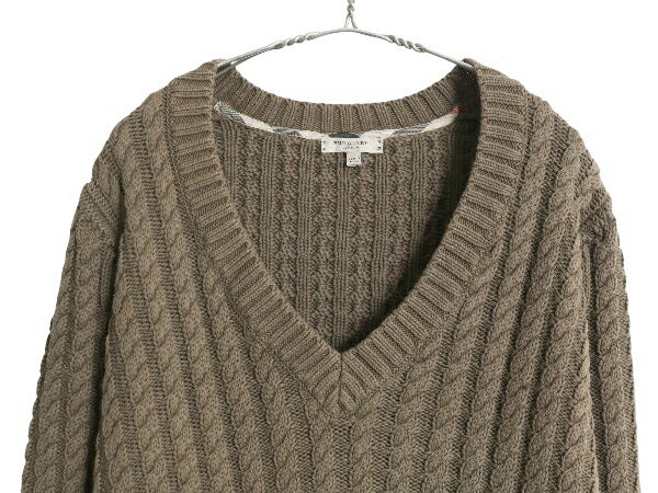 イタリア製 バーバリー ロンドン Vネック ケーブル ニット セーター メンズ L / 古着 無地 ヘビーウェイト コットン カーキ ブラウン 厚手