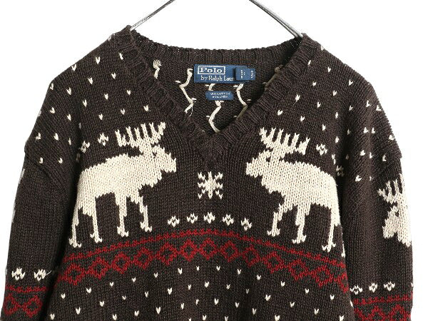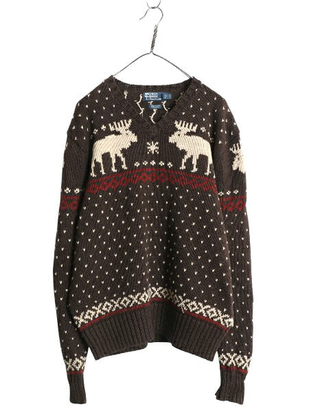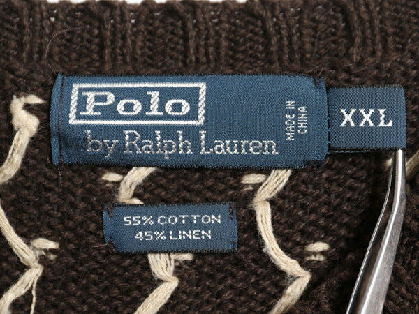 00s ポロ ラルフローレン ニット セーター メンズ XXL オールド コットン リネン Vネック ノルディック バーズアイ 大きいサイズ ゆったり