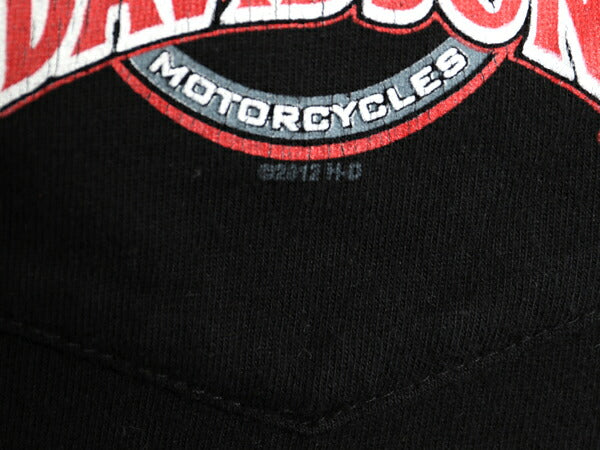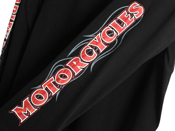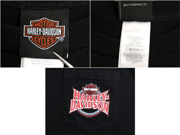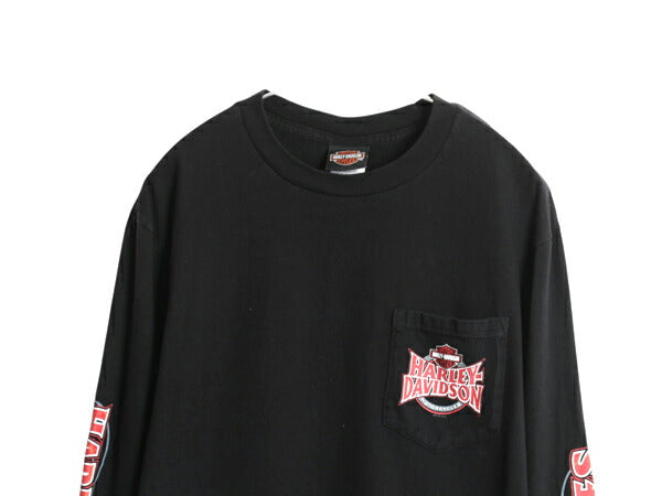 ハーレー ダビットソン 4面 プリント ポケット付き 長袖 Tシャツ メンズ L / バイク ロゴ ファイヤー イラスト オフィシャル ロンT 全面 黒