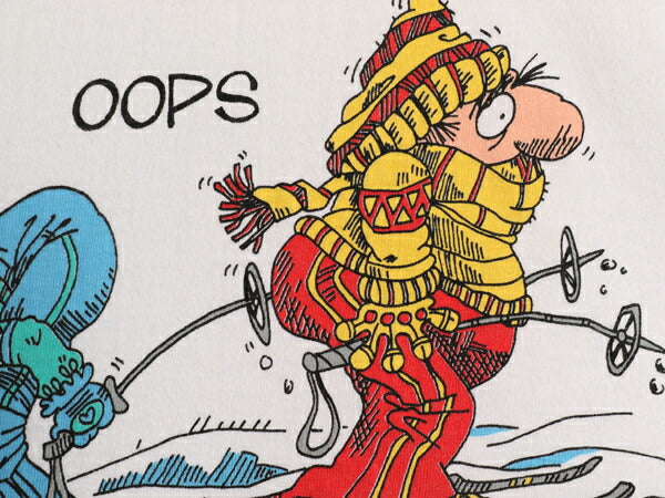 90s USA製 スキーヤー ジョーク イラスト プリント 長袖 Tシャツ メンズ レディース M 古着 オールド スキー キャラクター アート ロンT 白