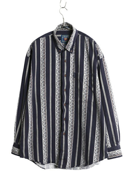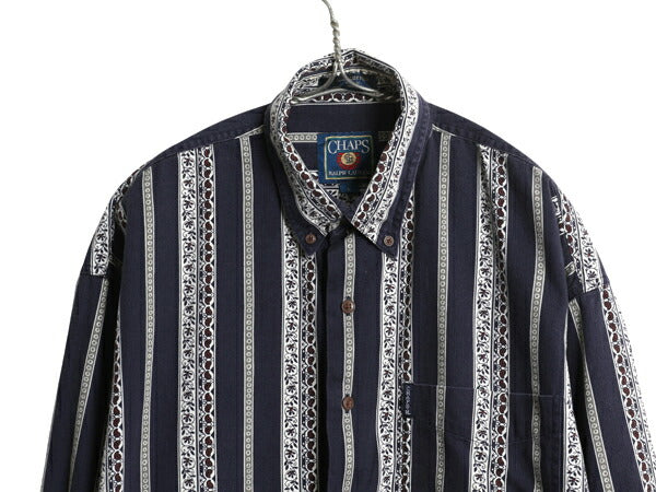 80s チャップス ラルフローレン ストライプ 長袖 ボタンダウン シャツ メンズ L / ヴィンテージ ポロ 長袖シャツ ボタニカル マルチカラー