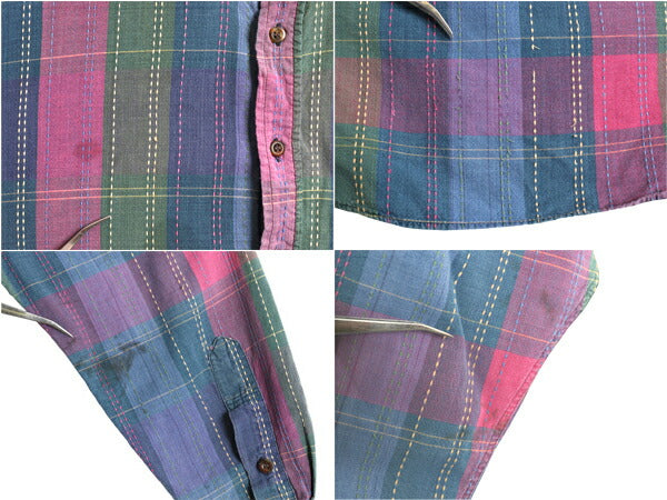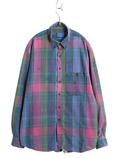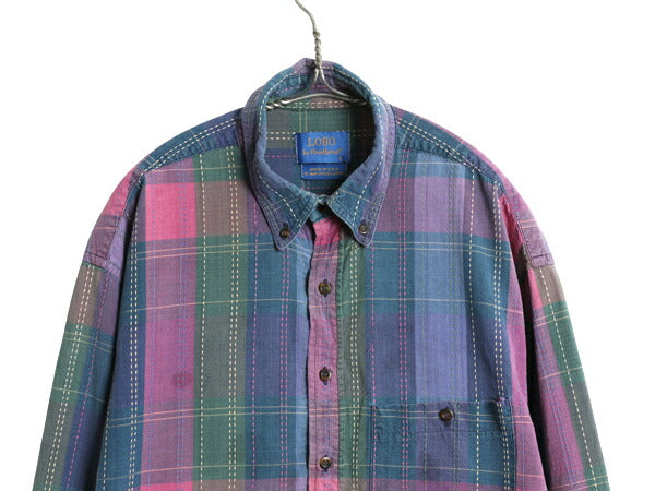 90s USA製 ペンドルトン チェック 長袖 ボタンダウン シャツ メンズ L ロボ オールド コットン ステッチ デザイン マルチカラー カジュアル