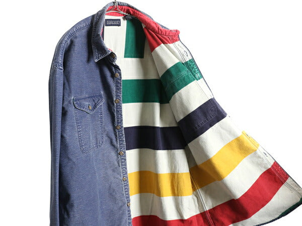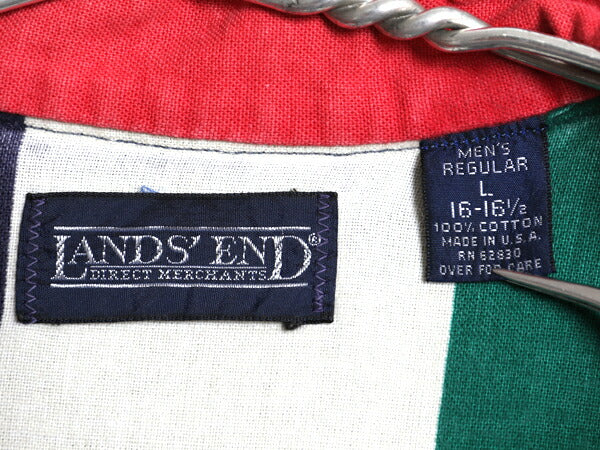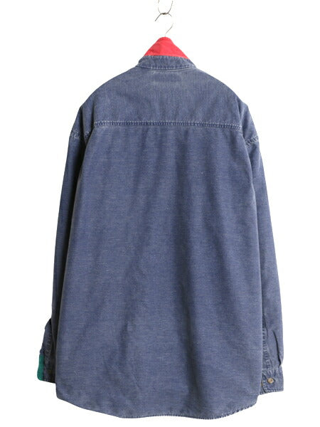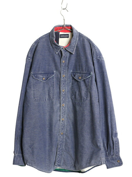 90s USA製 ランズエンド 長袖 シャツ ジャケット メンズ L / オールド フランネル ライナー付き ヘビーウェイト コットン キャンバス 無地