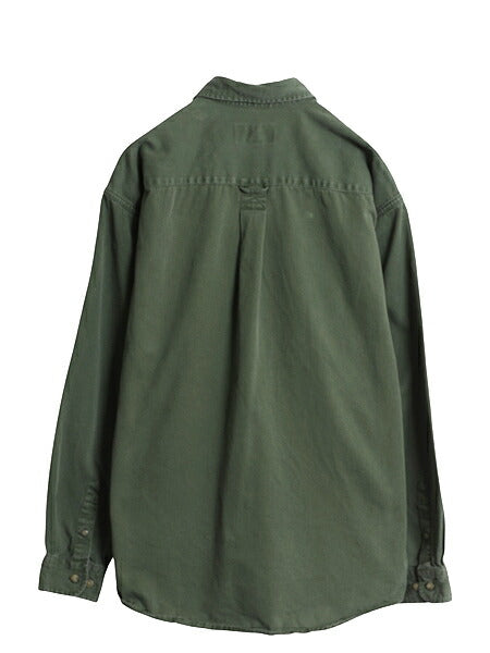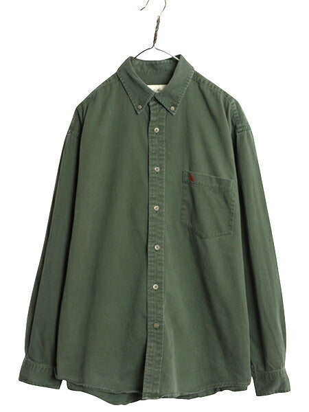 90s エディーバウアー 長袖 ボタンダウン シャツ メンズ L / オールド 長袖シャツ コットン ワンポイント ポケット付き ヘビーウェイト BD