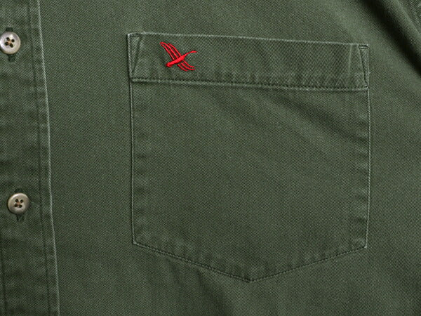左胸にワンポイントのロゴ刺繍入りのパッチポケット