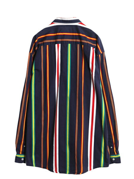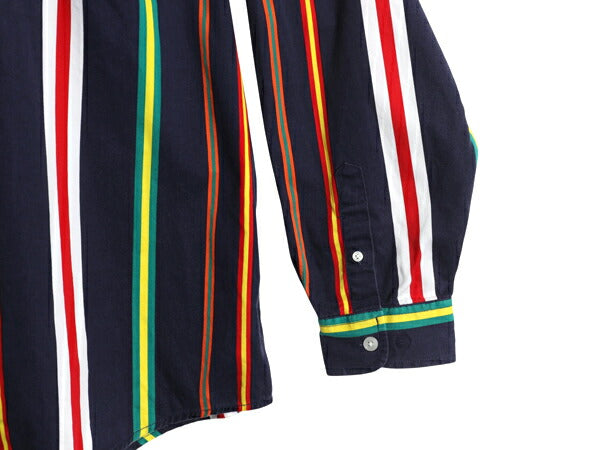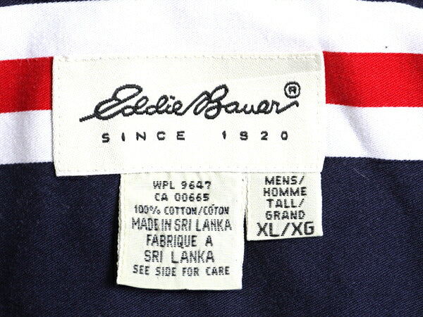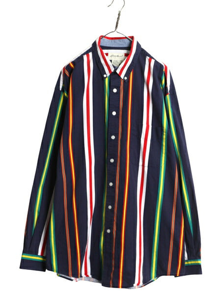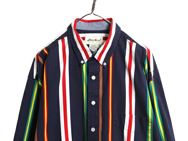 90s エディーバウアー ストライプ ボタンダウン 長袖 シャツ メンズ XL 古着 オールド コットン ポケット付き マルチカラー 大きいサイズ