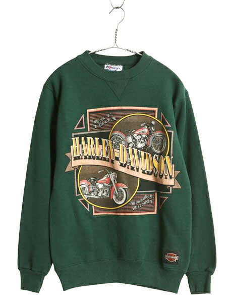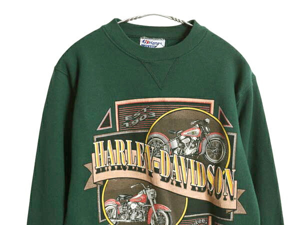 80s USA製 ハーレー ダビッドソン 両面 プリント スウェット メンズ S / ヴィンテージ オフィシャル ヘビーウェイト バイク トレーナー 緑