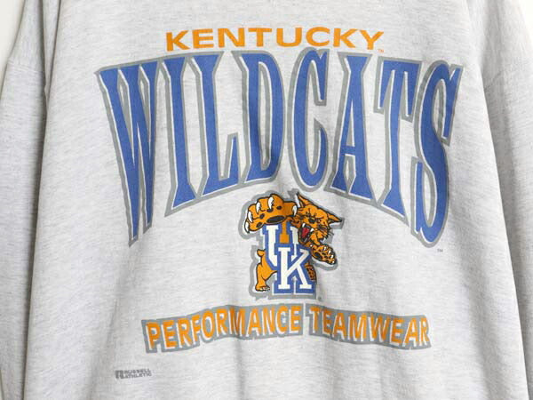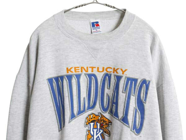 90s USA製 4段 カレッジ プリント メンズ レディース XL オールド トレーナー 前V 裏起毛 タイガー キャラクター マスコット 大きいサイズ