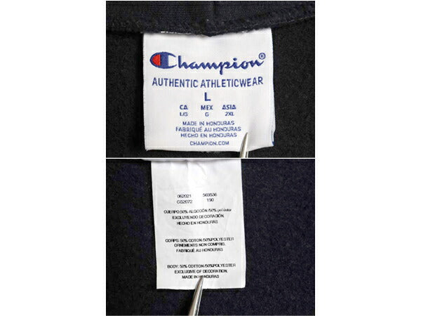 チャンピオン YALE カレッジ 両面 プリント フルジップ スウェット フード パーカー メンズ L 古着 トレーナー 裏起毛 イエール ネイビー