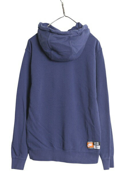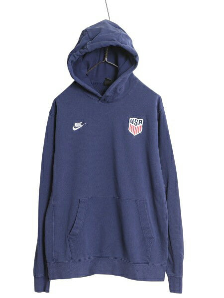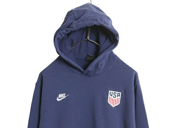ナイキ スウェット フード パーカー メンズ M 古着 サッカー アメリカ 代表 トレーナー スウッシュ プルオーバー 星条旗 ヘビーウェイト 紺