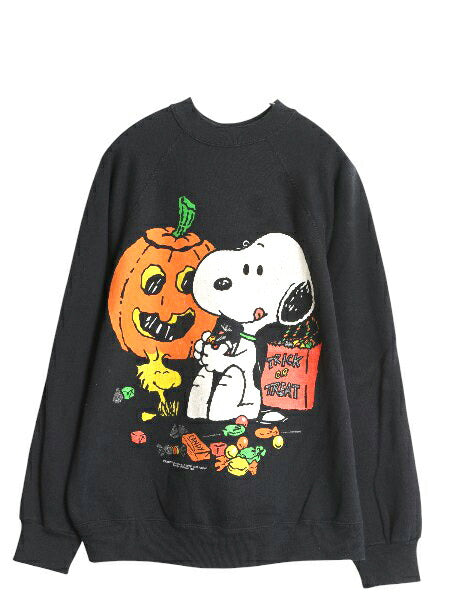 90s USA製 スヌーピー プリント スウェット メンズ レディース L / オールド ピーナッツ オフィシャル キャラクター トレーナー 裏起毛 黒