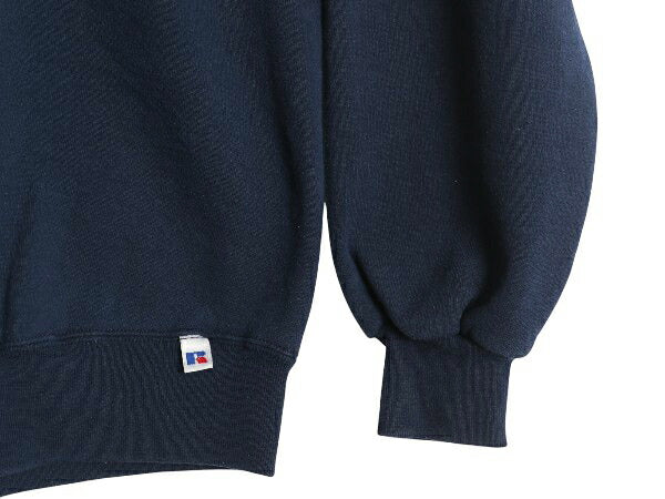 90s USA製 ラッセル ワンポイント ドッグ 刺繍 スウェット メンズ レディース L オールド トレーナー 前V 裏起毛 キャラクター シンプル 紺