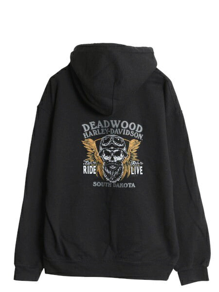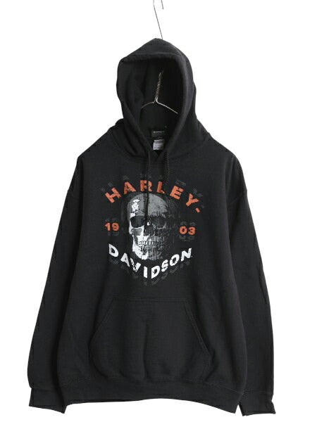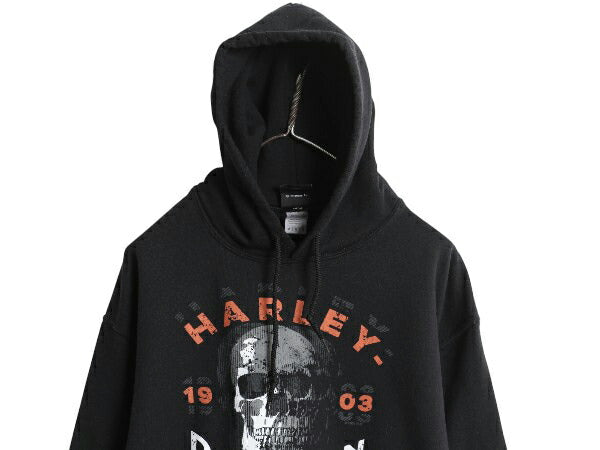 ハーレー ダビッドソン 両面 プリント スウェット フード パーカー メンズ M / プルオーバー トレーナー バイク スカル イラスト ドクロ 黒