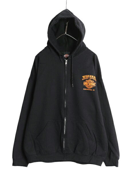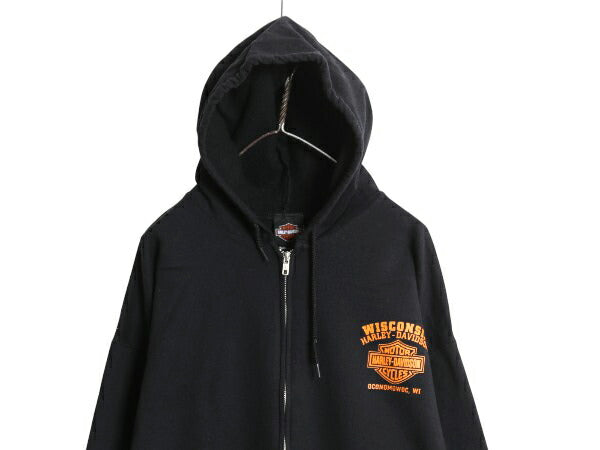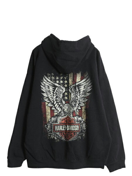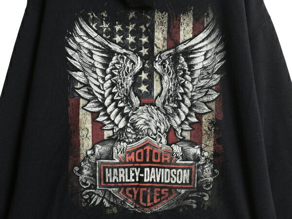 ハーレー ダビッドソン 両面 プリント フルジップ スウェット フード パーカー メンズ XL トレーナー バイク イーグル 星条旗 イラスト 黒