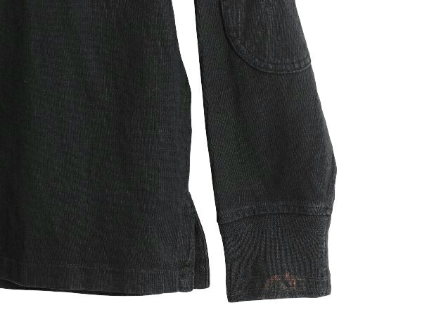 フロント襟下の目立たない場所、左袖リブに色抜けがあります。