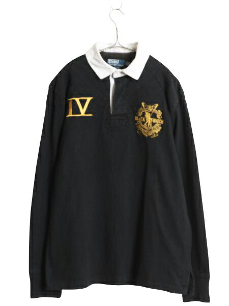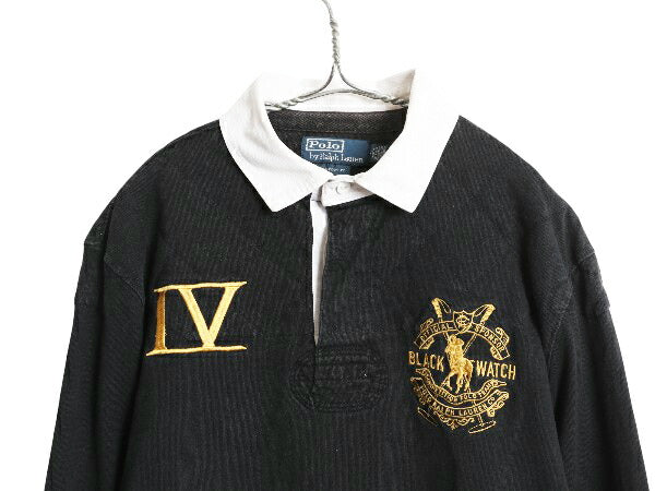 ミドルポニー ポロ ラルフローレン 長袖 ラガーシャツ メンズ L ラグビー 長袖シャツ ポロシャツ カットソー ヘビーウェイト ブラック 細身