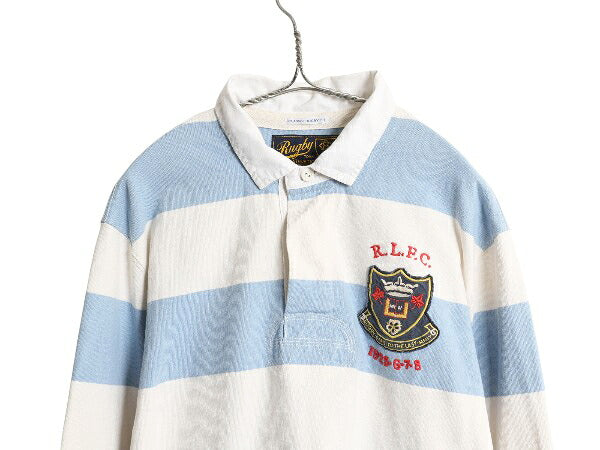 ラグビー ラルフローレン ボーダー 長袖 ラガー シャツ メンズ XL / 長袖シャツ カットソー ツートン 大きいサイズ ナンバリング ワッペン