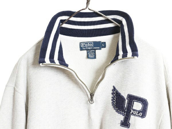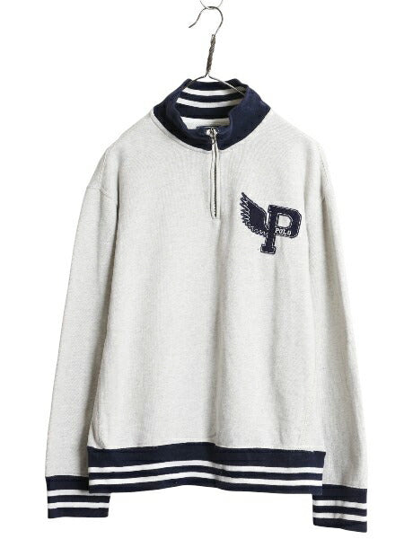 00s ポロ ラルフローレン P-WING 刺繍 ハーフジップ スウェット メンズ L / オールド 裏起毛 トレーナー ワンポイント ハイネック ツートン