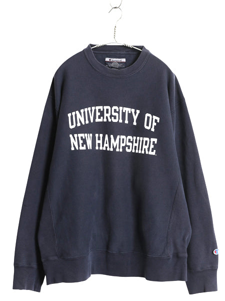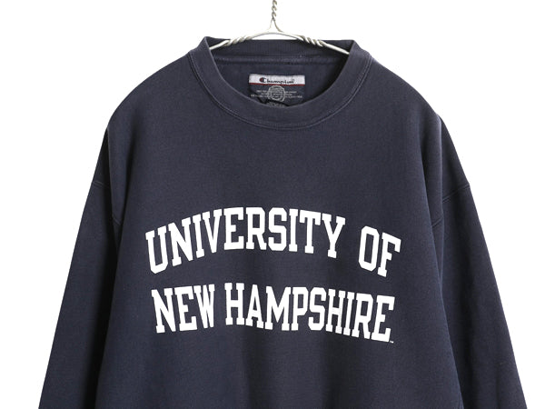 00s チャンピオン 両面 カレッジ プリント スウェット メンズ L / オールド リバースウィーブ タイプ ヘビーウェイト トレーナー 裏起毛 紺