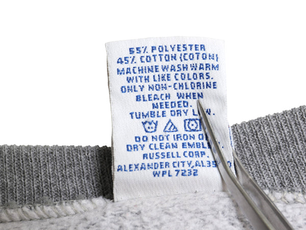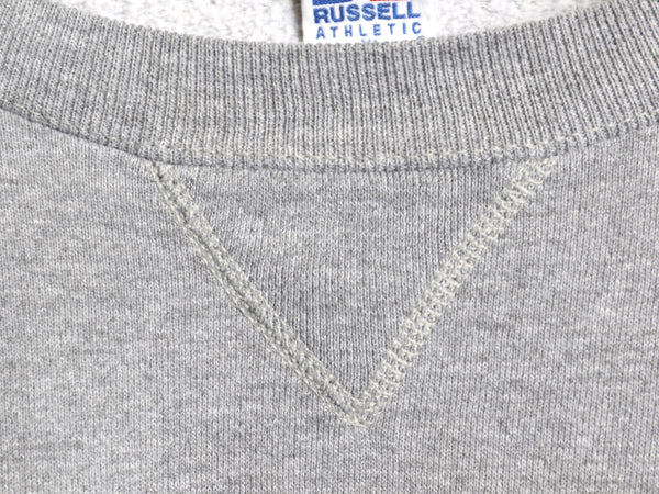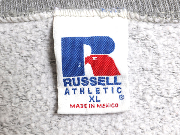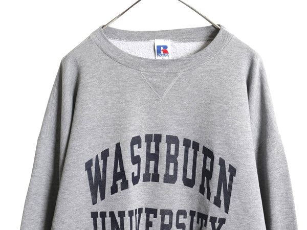 90s ラッセル 2段 カレッジ プリント スウェット メンズ レディース XL / オールド トレーナー 裏起毛 前V クルーネック 大きいサイズ 灰