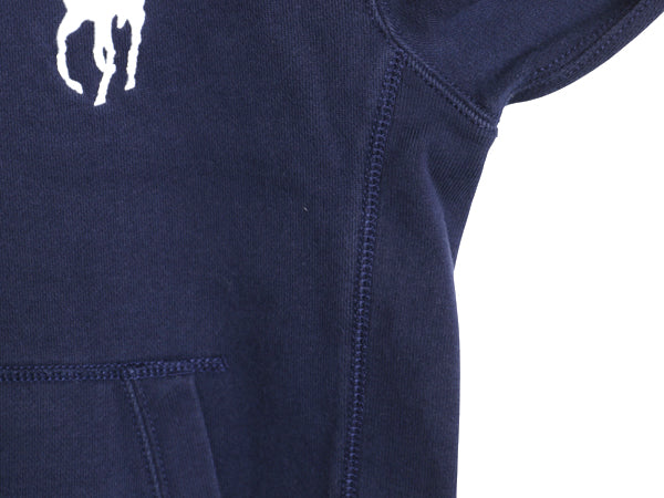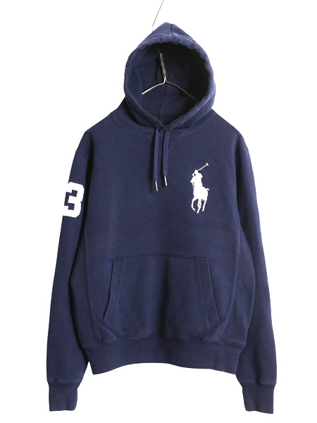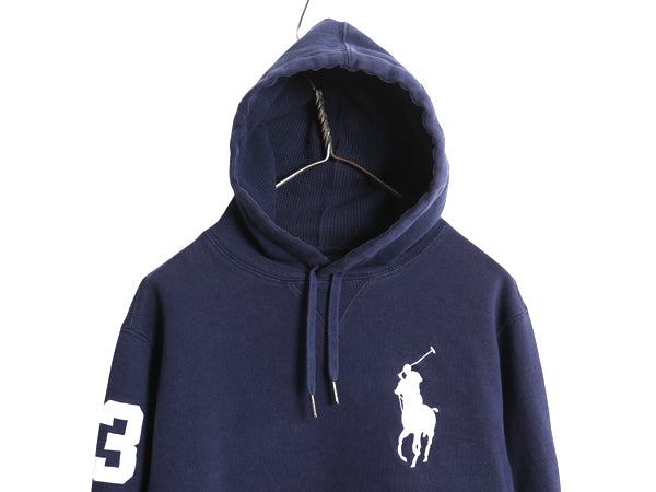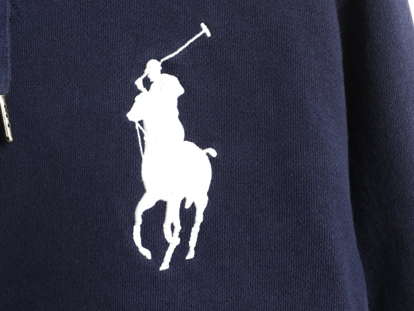 ビッグポニー ポロ ラルフローレン スウェット フード パーカー メンズ S / 古着 トレーナー 前V 裏起毛 プルオーバー ヘビーウェイト 紺