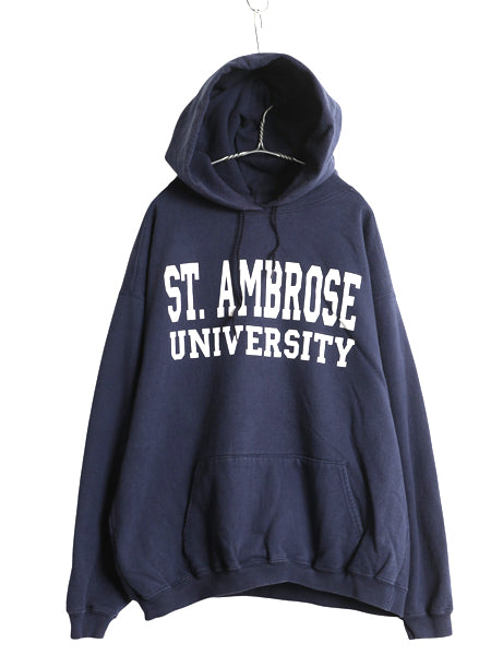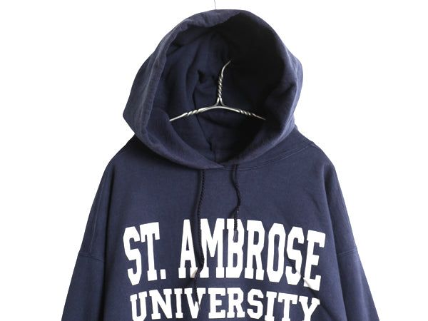 90s USA製 2段 カレッジ プリント スウェット フード パーカー メンズ XL / 古着 オールド トレーナー 裏起毛 プルオーバー ヘビーウェイト