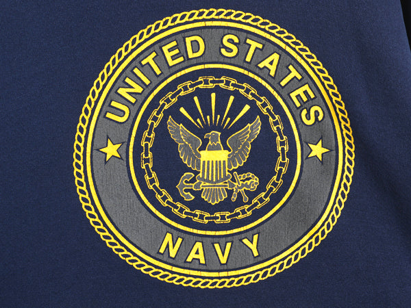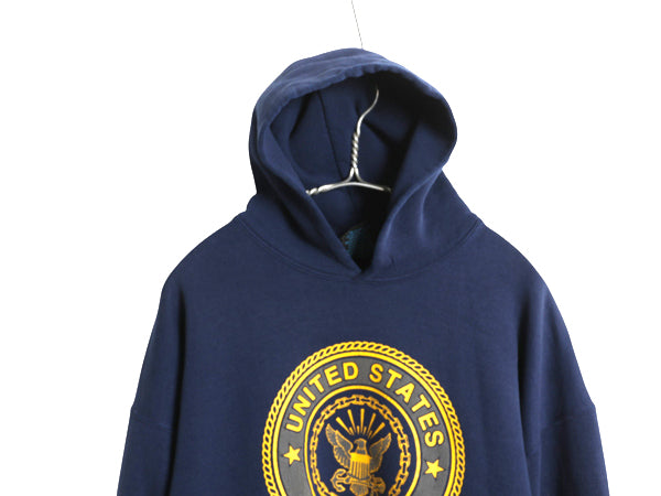 90s USA製 US NAVY 両面 プリント スウェット フード パーカー メンズ L / 古着 オールド ミリタリー トレーナー 裏起毛 USN 軍物 ネイビー