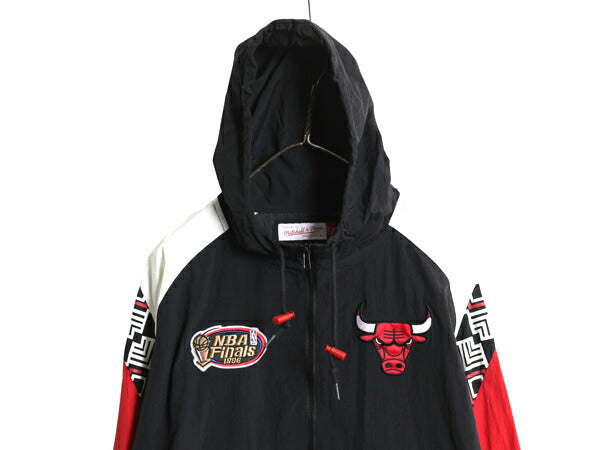 ブルズ ナイロン アノラック パーカー ジャケット メンズ L NBA オフィシャル ミッチェルアンドネス プルオーバー スタジャン ハーフジップ