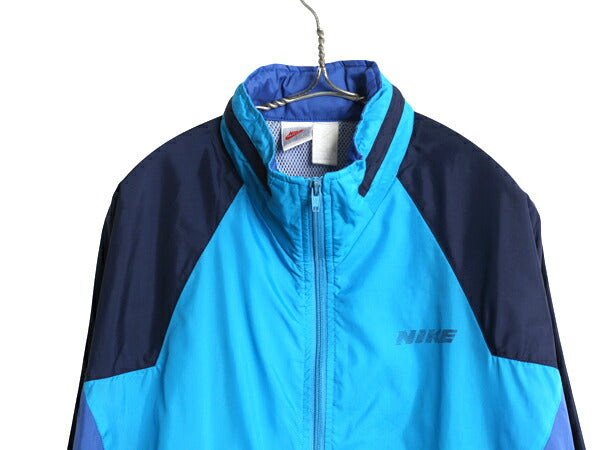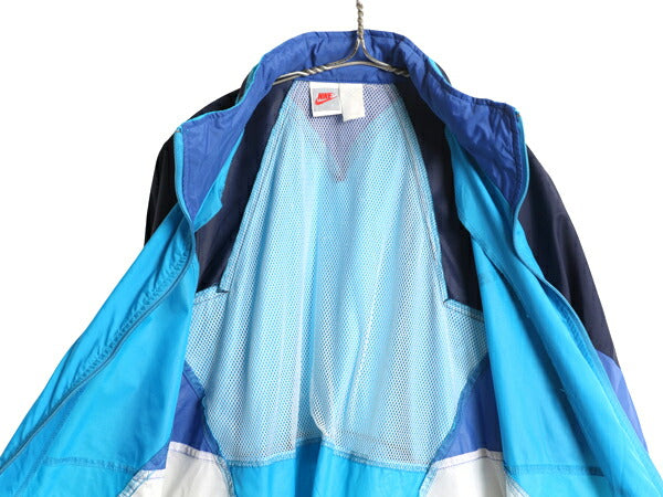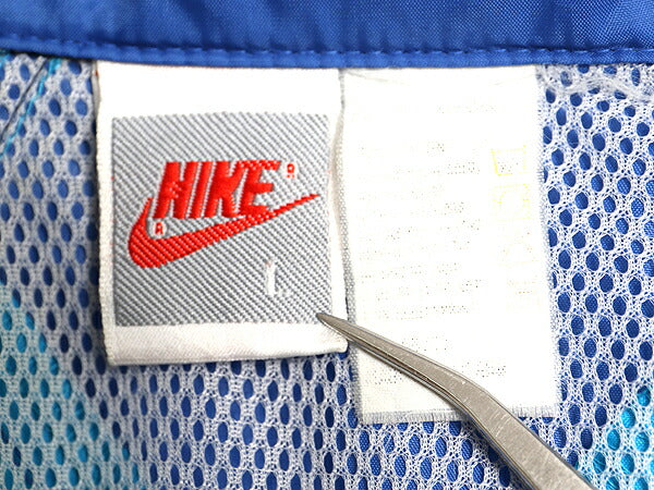 90s ナイキ フルジップ ナイロン トラック ジャケット メンズ L 古着 初期 銀タグ オールド ウインドブレーカー ブルゾン 収納 フード 薄手