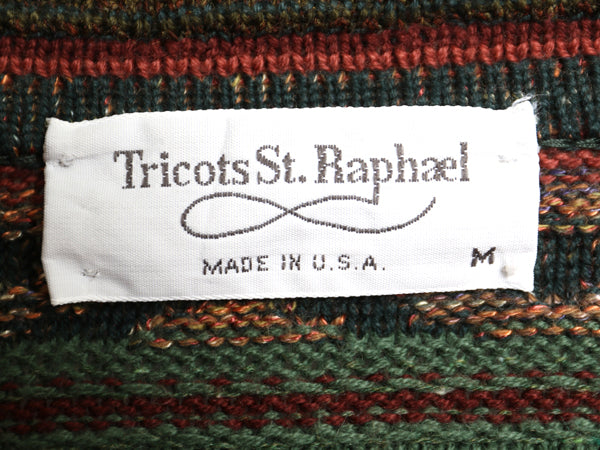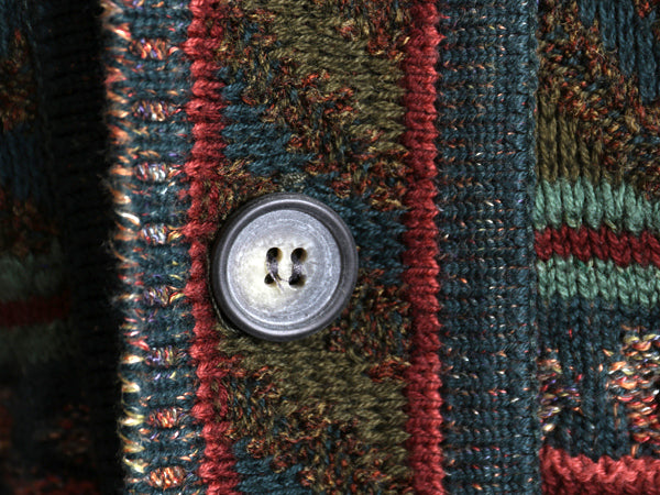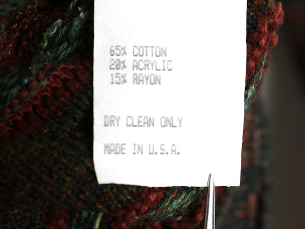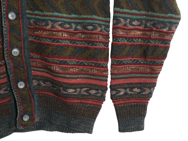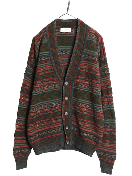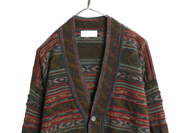 80s USA製 3D 立体編み デザイン ニット カーディガン メンズ M ヴィンテージ セーター 前開き 重ね着 羽織り マルチカラー 総柄 トップス