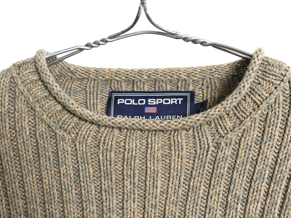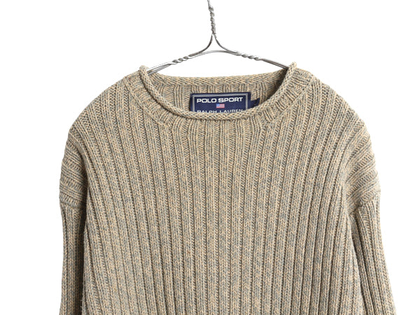 00s ポロスポーツ ラルフローレン ロールネック ニット セーター メンズ XL オールド ポロ コットン 針抜き リブ編み 大きいサイズ 当時物