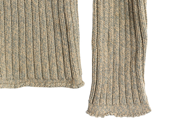 落ち着いた、カーキ × ライトベージュ の杢編み ミックス カラー