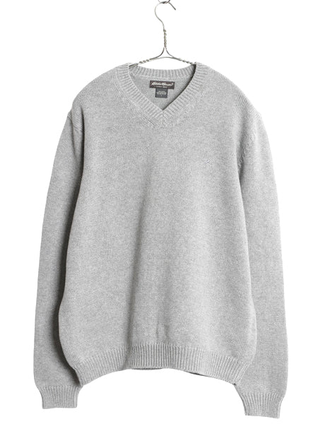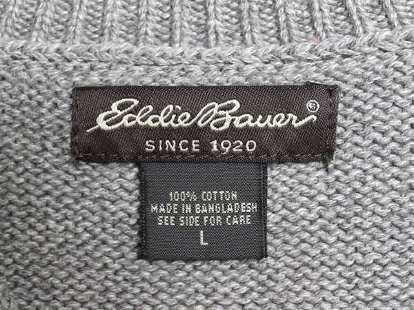 00s エディーバウアー コットン 二ット セーター メンズ L / オールド Vネック 長袖セーター ミドルゲージ ワンポイント ロゴ刺繍 シンプル