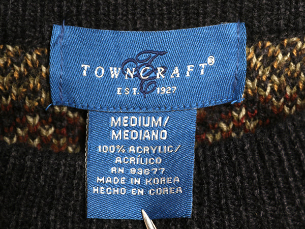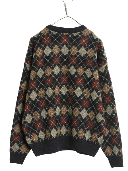 90s タウンクラフト アーガイル ニット セーター メンズ M オールド ぺニーズ アクリル クルーネック 総柄 デザイン マルチカラー トップス