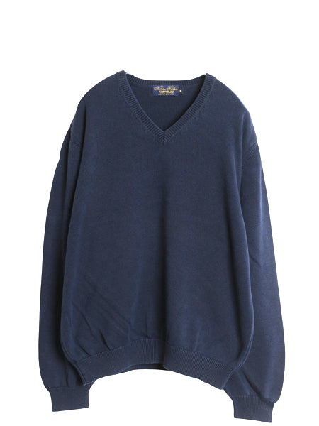 90s USA製 ブルックスブラザーズ コットン ニット セーター メンズ XL オールド Vネック 無地 長袖ニット シンプル 大きいサイズ ネイビー