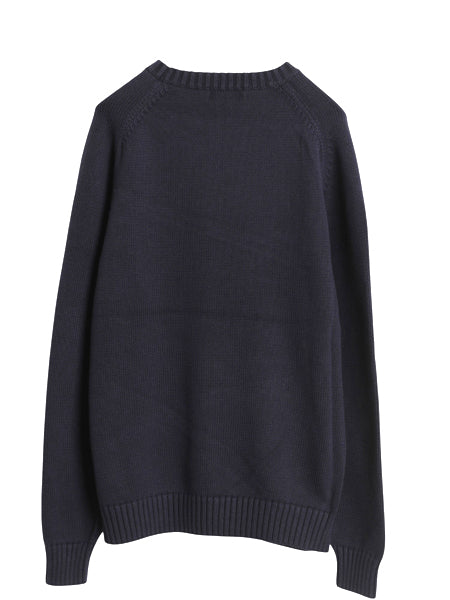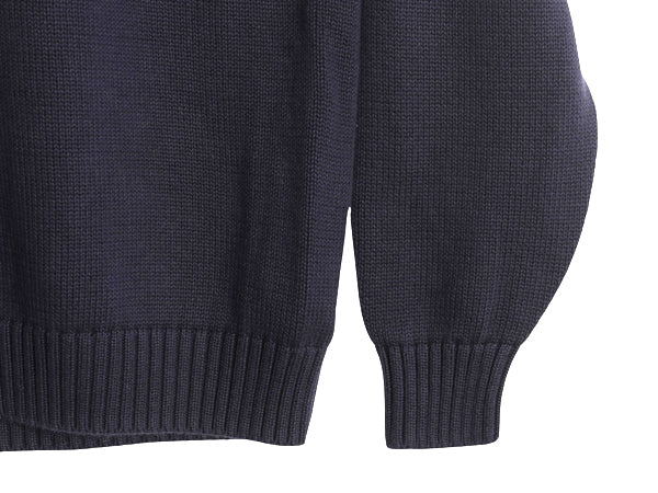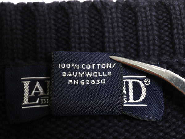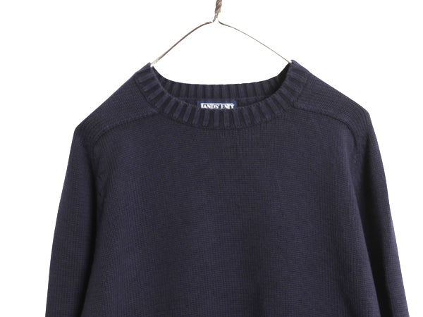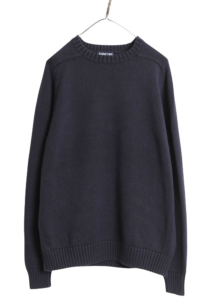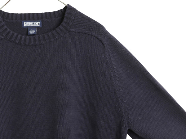 90s ランズエンド コットン ニット セーター メンズ L / オールド 日本製 クルーネック 長袖ニット ミドルゲージ 無地 シンプル ネイビー