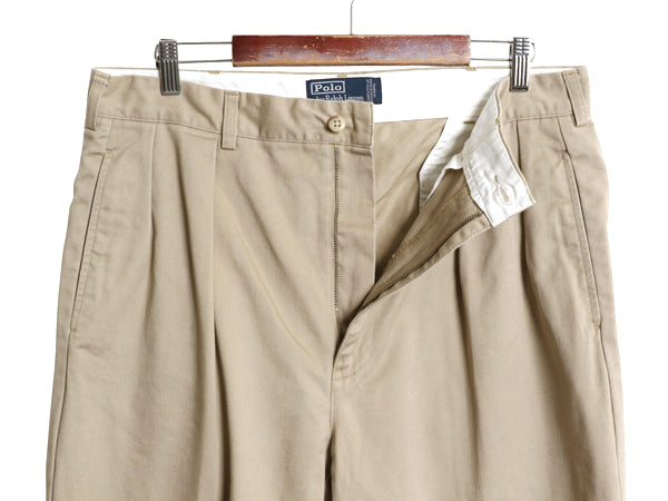 90s ポロ ラルフローレン コットン チノ パンツ 36 34 / オールド スラックス チノパン ストレート ツータック ボトムス ポロチノ ベージュ