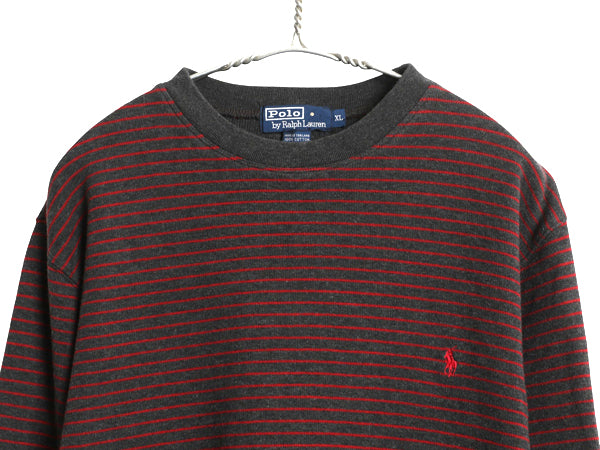 90s ポロ ラルフローレン ボーダー リブ編み コットン ニット スウェット メンズ XL オールド セーター トレーナー ワンポイント ツートン