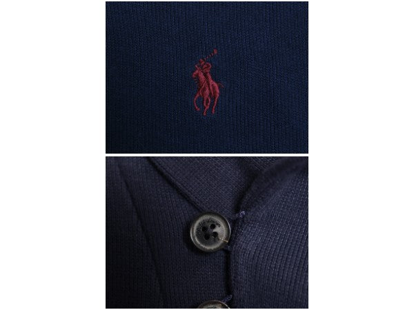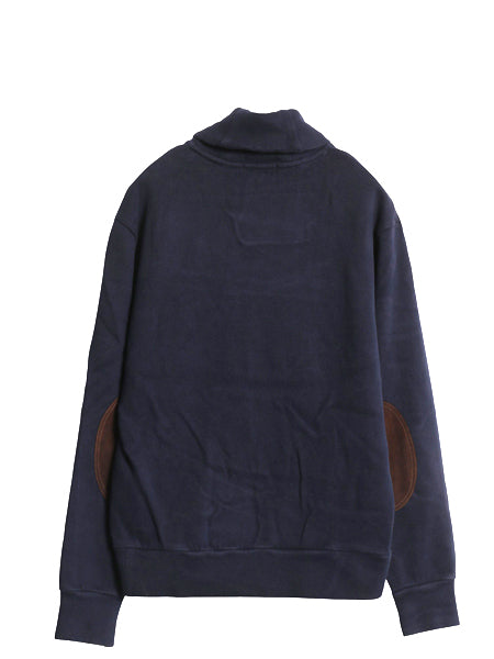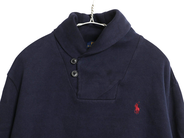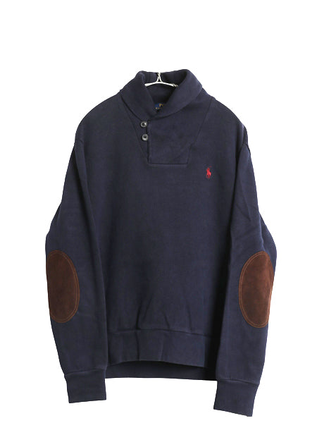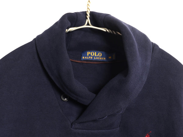 ポロ ラルフローレン ショールカラー コットン ニット スウェット メンズ M / リブ編み セーター ワンポイント 本革 レザー エルボーパッチ