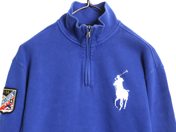 ビッグポニー ポロ ラルフローレン ハーフジップ コットン ニット スウェット メンズ M / トレーナー セーター ハイネック リブ編み ブルー