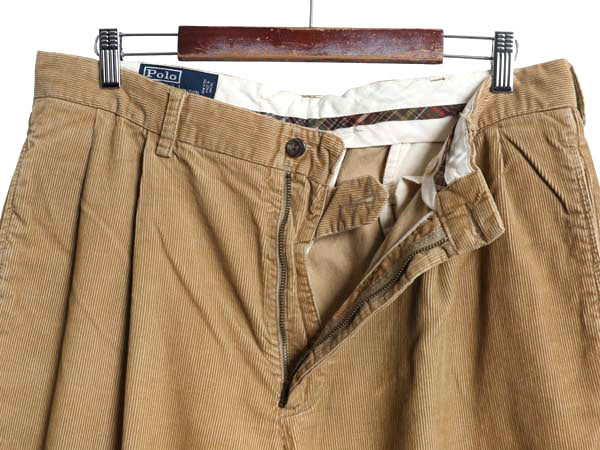 90s ポロ ラルフローレン 細畝 コーデュロイ パンツ メンズ 35 30 / オールド ストレート ツータック スラックス コーズ 裾ダブル 無地 茶