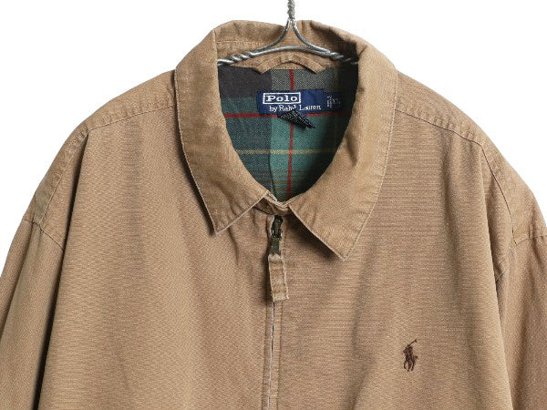 90s ポロ ラルフローレン スイングトップ ジャケット メンズ XL オールド コットン ブルゾン フルジップ フランネル チェック ライナー付き