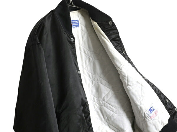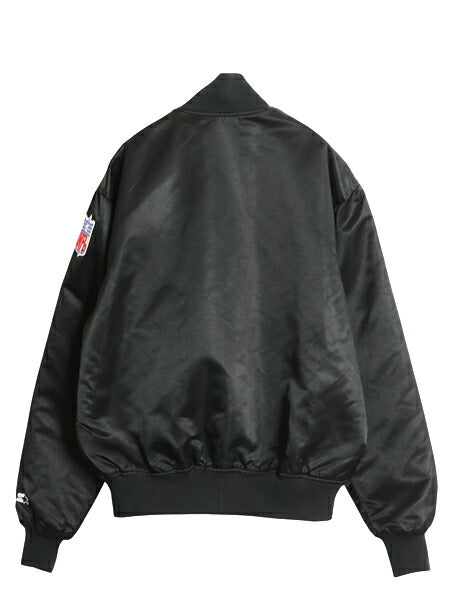 90s USA製 レイダース ナイロン サテン スタジャン メンズ L オールド NFL オフィシャル スターター 中綿 キルティング ライナー ブラック